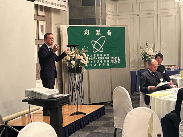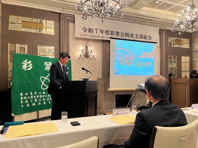 総会では、関東支部副会長新設に関する議題が提案されました。協議の結果、7期生の水戸部和幸様が関東支部の副会長に就任しました。その後、記念講演も行われ、26期生で現在ミクロ技研株式会社代表取締役社長の冨澤肇様による高校時代の思い出や出会い、現在社長を務めているミクロ技研株式会社の紹介や取り組みなど貴重なお話をいただきました。